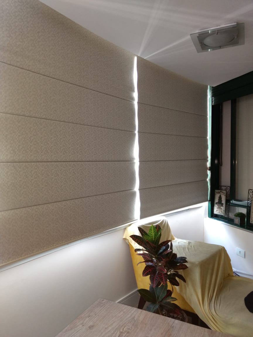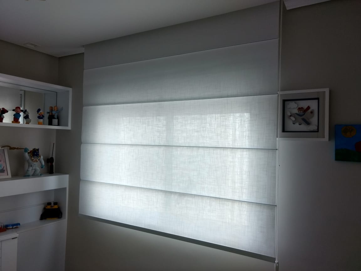 Cortina em tecido com pregas horizontais, acionamento horizontal e recolhimento em blocos. Esta cortina pode ser com ou sem ondas, se adequando ao ambiente de acordo com a sua preferência, proporcionando harmonia e sofisticação.